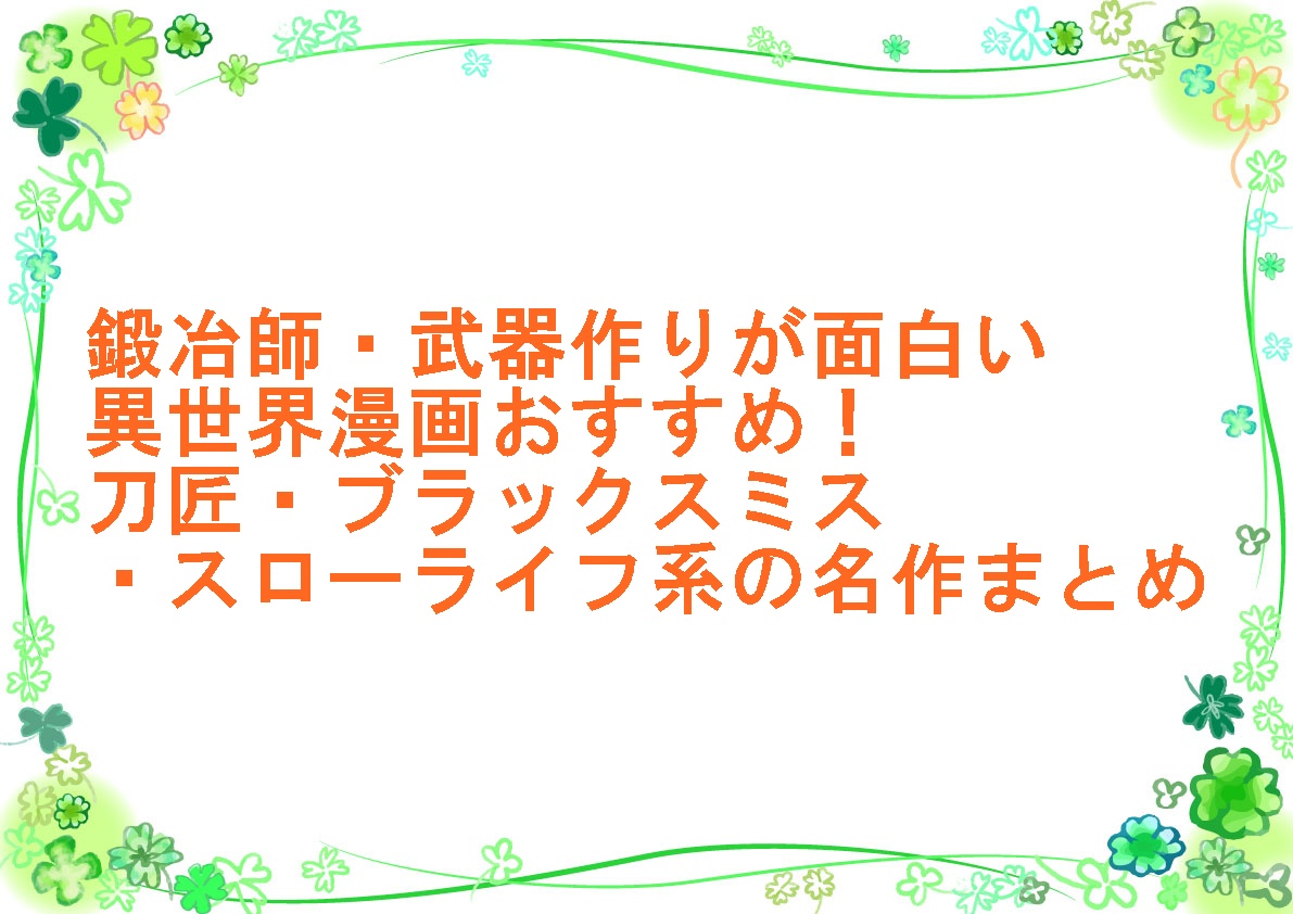 - 鍛冶屋が主役の異世界漫画として王道