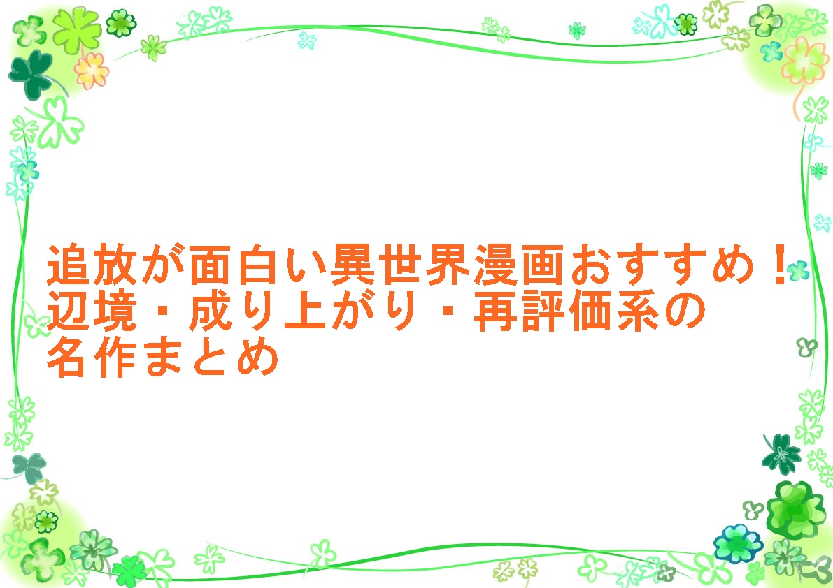 追放が面白い異世界漫画は、理不尽に追い出されるところから始まります。